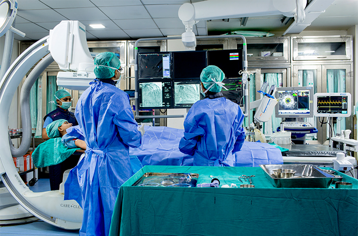 Department of Interventional Radiology (IR) at Medical Trust Hospital is capable of doing all kind of interventional procedures for entire body. It may be opening of blood vessel in brain, neck, abdomen, legs to blocking of abnormal blood vessels to treat liver cancer, fibroid, bleeding in stomach etc. IR procedures can be used in almost every organ system, and the list of conditions that can be diagnosed and treated using image-guided techniques is continuously growing. Department also offers 24 x 7 hours service for acute stroke (paralysis) patient to remove clot from blood vessel of brain (mechanical thrombectomy).